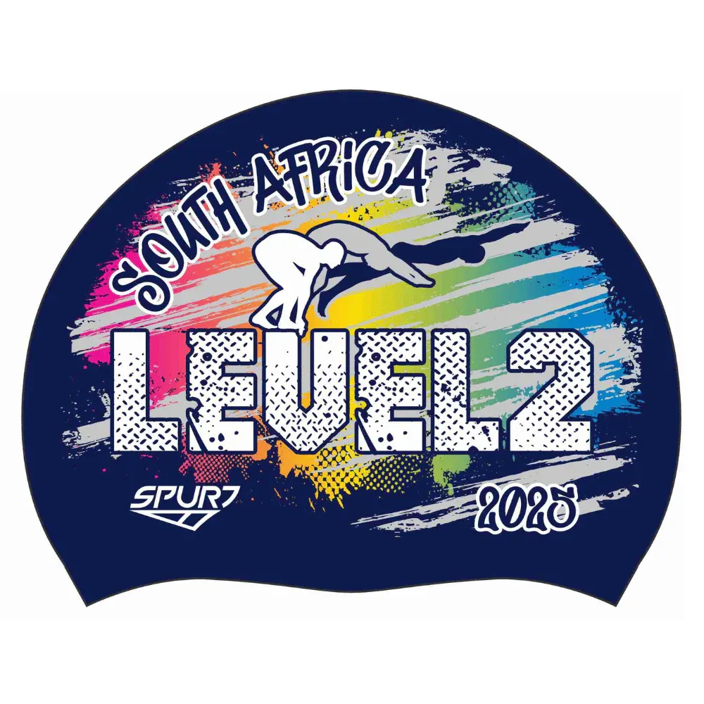 Be the first to review “Level 2 2025 Rainbow blend behind Swimmer on F208 Dark Navy Spurt Silicone Swim Cap”