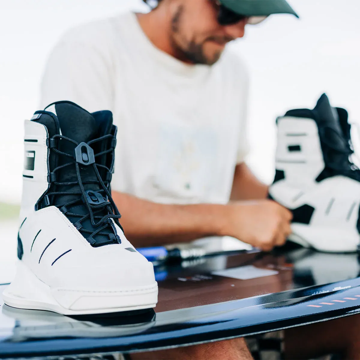 Coming in at 4lbs, the AERO 6X™ is the pinnacle of premium wakeboarding footwear. Designed for LF legend, Harley Clifford…but optimized for riders like you seeking the best of the best. The upper material on this binding has been laser cut and welded with carbon reinforcement to shave off pounds of material and stitching found in normal bindings. Without this extra weight and bulkiness, you’ll be able to take your tricks higher off the wake and further out into the flats…get ready to hear the folks in the boat go wild when you stomp your next trick.