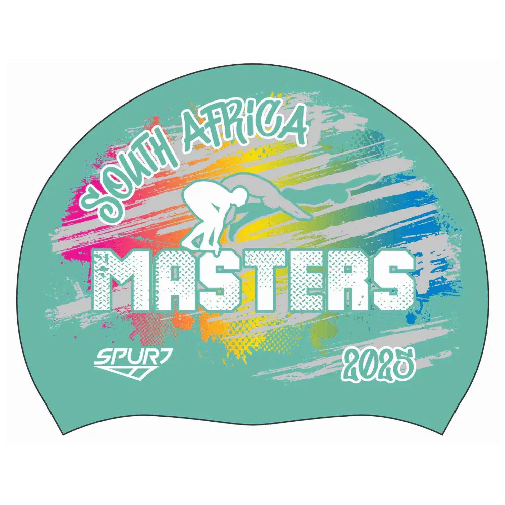 Be the first to review “MASTERS 2025 Rainbow blend behind Swimmer on SD13 Pale Aquamarine Green Spurt Silicone Swim Cap”