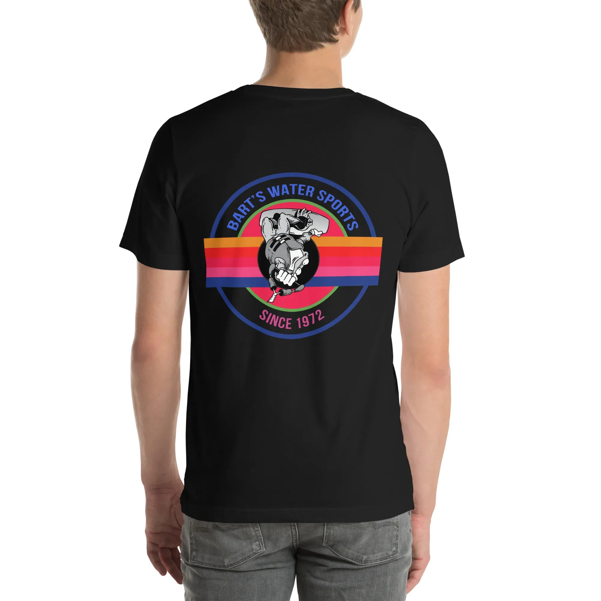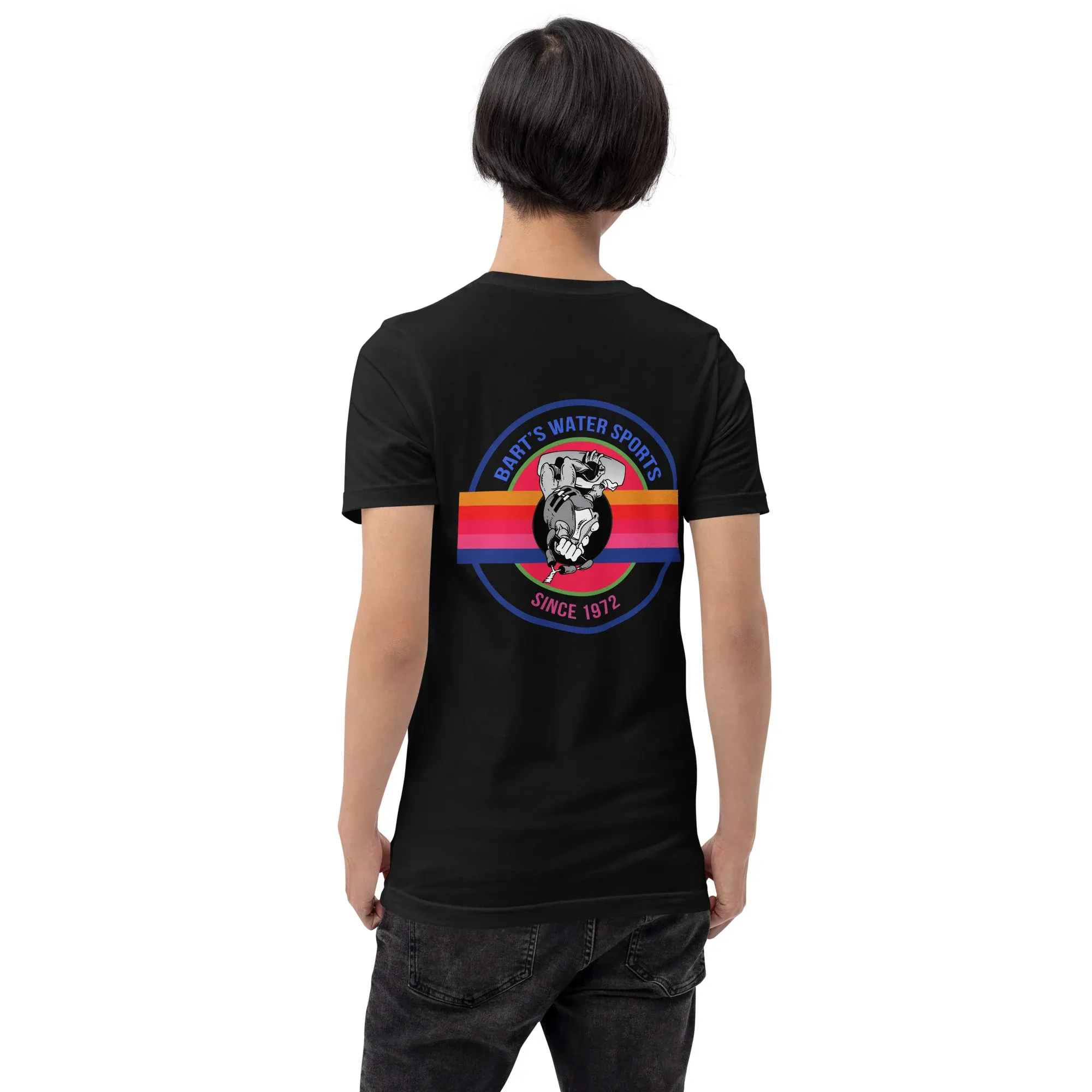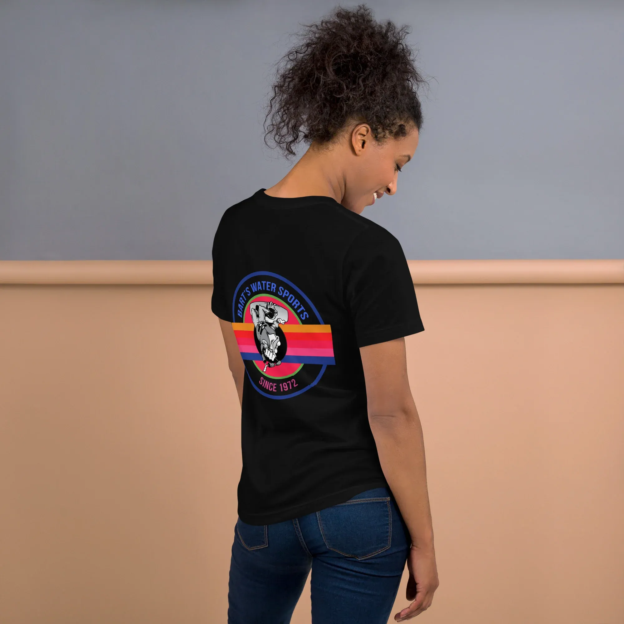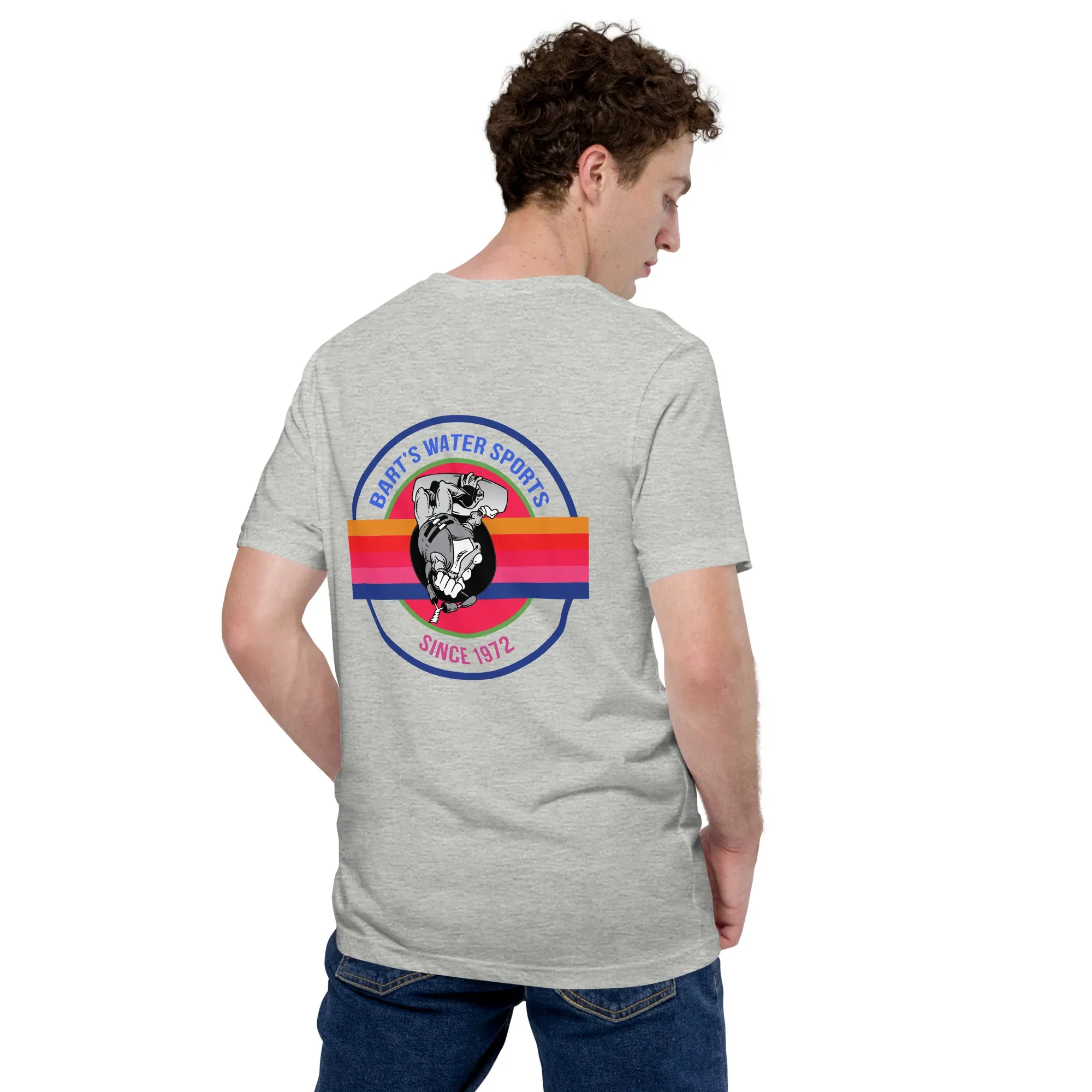 Introducing the Upside Down Wakeboard Frog Unisex T-Shirt by Barts Water Sports, where style meets fun in this eye-catching design perfect for water sports enthusiasts and casual wearers alike.