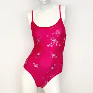 Kikx Extra Life Thin Strap Swimsuit in Full Print Flamingos in Splashes on Bright Pink