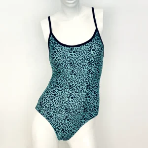 Kikx Extra Life Thin Strap Swimsuit in Full Print Leopard Print on Pale Aquamarine