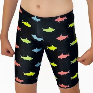 Kikx Extra Life Jammer Swimsuit in Neon Sharks and Fragments on Black