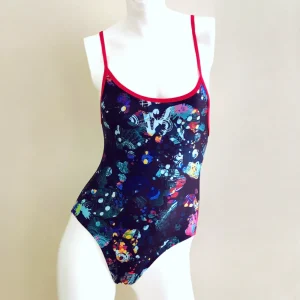 Extra Life Thin Strap Swimsuit in Paint Splash with Red Straps