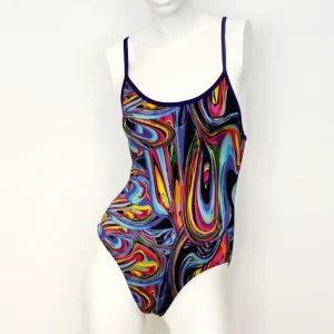 Extra Life Thin Strap Swimsuit in Blue and Lilac Multi Swirls with Purple Straps