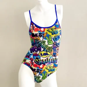 Extra Life Thin Strap Swimsuit in Full Print Graffiti on White